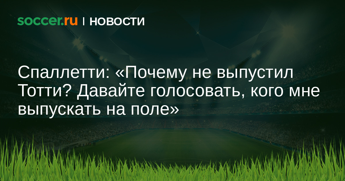 Когда я выпускаю Тотти на последние 5 минут матча, вы говорите, что я не проявляю к Франческо должного уважения. Поэтому давайте здесь сойдемся на мнении и перестанем искать контраргументы. В последний раз я выпустил его за 5 минут до конца, и вы жаловались!