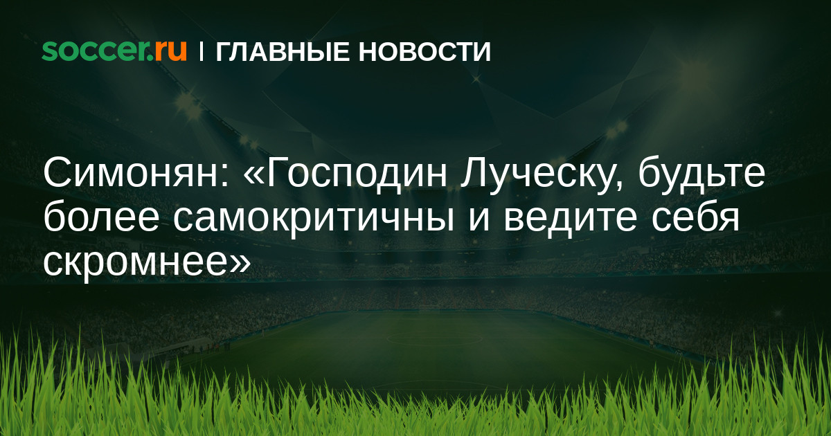 Удивляет ли меня высказывание Луческу в адрес президента РФС? Виноваты все, но не сам Луческу. И поля были, и московские судьи, теперь уже Виталий Леонтьевич. А тренер на белом коне. Вот что могу ему пожелать. Господин Луческу, будьте более самокритичны и ведите себя чуточку скромнее».