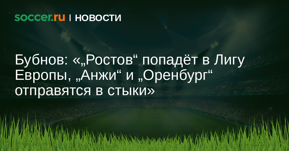 Футбольный эксперт Александр Бубнов в преддверии 30-го тура РФПЛ спрогнозировал, что «Ростов» займёт 4-е место в чемпионате России и выйдет в Лигу Европы, тульский «Арсенал» вылетит из Премьер-Лиги напрямую, а «Оренбург» и «Анжи» будут играть в переходных матчах: