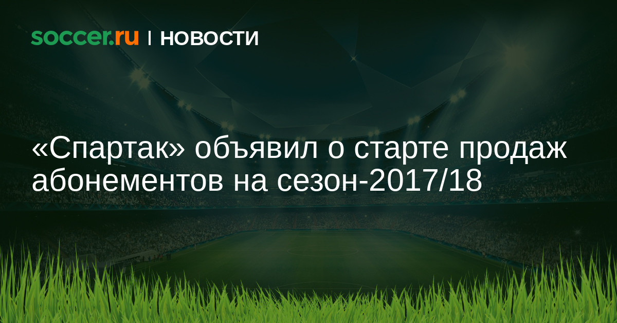 «Спартак» объявил о старте продаж абонементов на сезон-2017/18. Стоимость самого дешевого абонемента составляет 5 525 рублей для владельцев абонементов в сезоне-2016/17 или 6 175 рублей для новых клиентов. Цена самого дорогого абонемента, куда входит ресторанное питание и право въезда на территорию, составит 169 150 рублей для действующих владельцев или 189 150 рублей для новых клиентов.