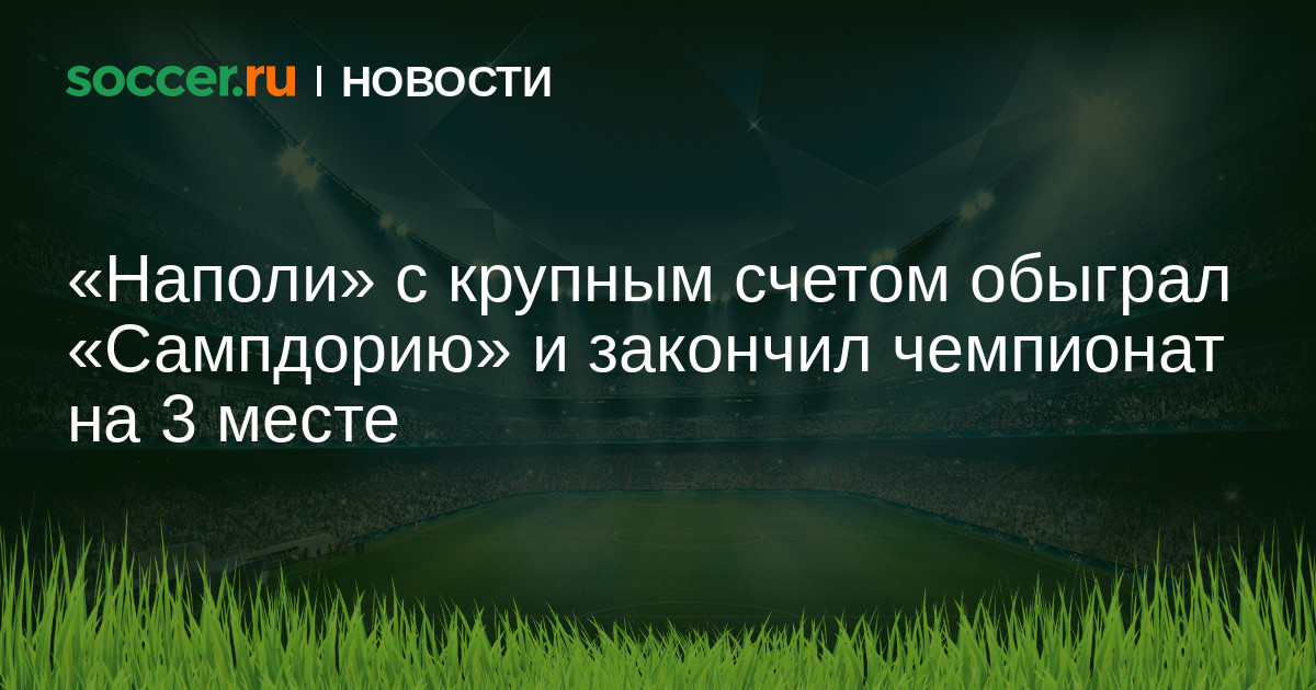 В финальном туре Серии А «Наполи» с крупным счетом обыграл «Сампдорию». Однако победа «Ромы» в параллельном матче оставляет клуб из Неаполя на 3 позиции в чемпионате Италии.