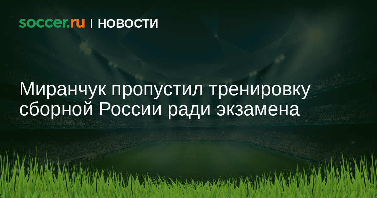 Полузащитник «Локомотива» и сборной России Алексей Миранчук сегодня пропустил тренировку национальной команды, которая продолжает готовиться к матчам Кубка Конфедераций. Как сообщил пресс-атташе сборной Игорь Владимиров, 21-летний футболист сдает экзамен (какой — не уточняется). Кроме того, индивидуальную тренировку проводит полузащитник Александр Головин: